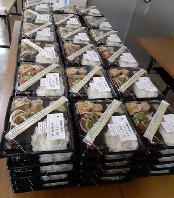 久米小学校区内の子どもと家族を支援するため、昼食弁当の配布を行いました。
