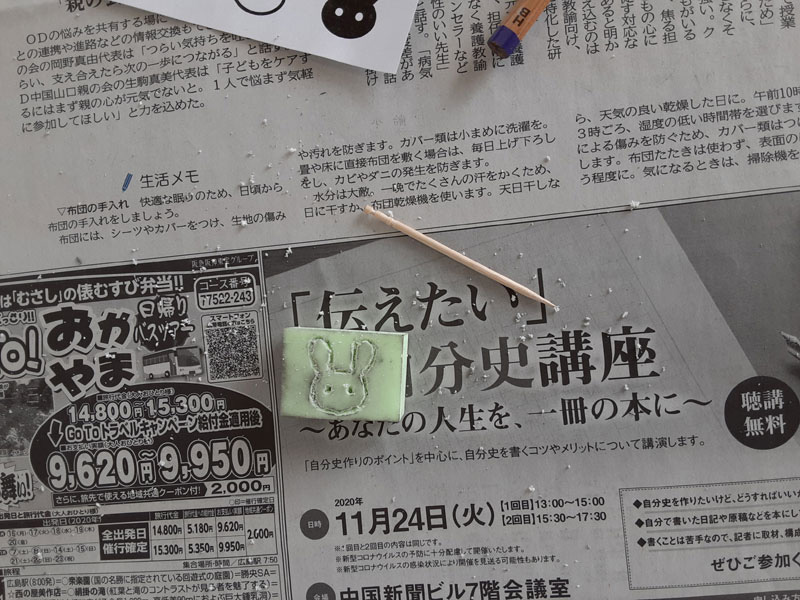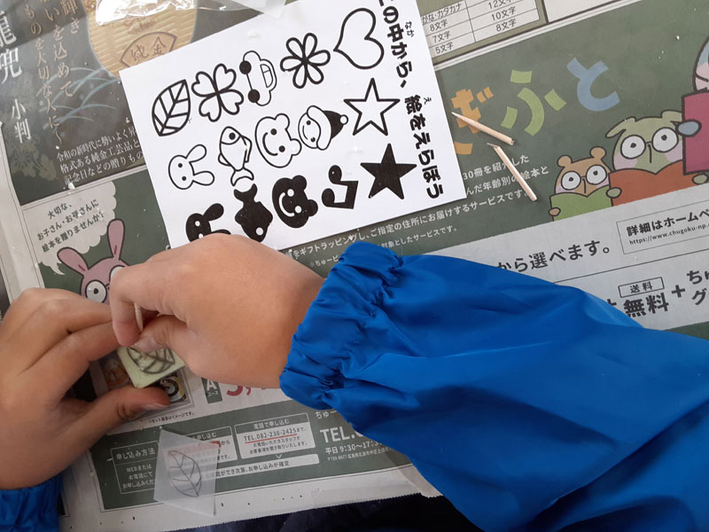 講師は市内在住のみやびらんど★消しゴムはんこ/保育教材/工作教室/デザイン (miyabiland.com)の藤嶋みやび先生。保育士資格を持ち、グラフィックデザイナーとして各種イベントでワークショップを開催したり、地元ケーブルテレビで工作番組にも出演されています。