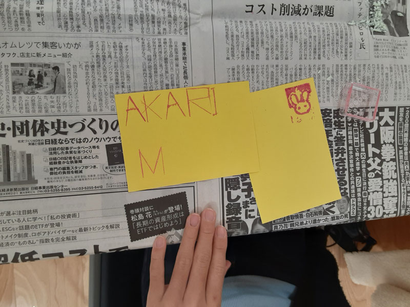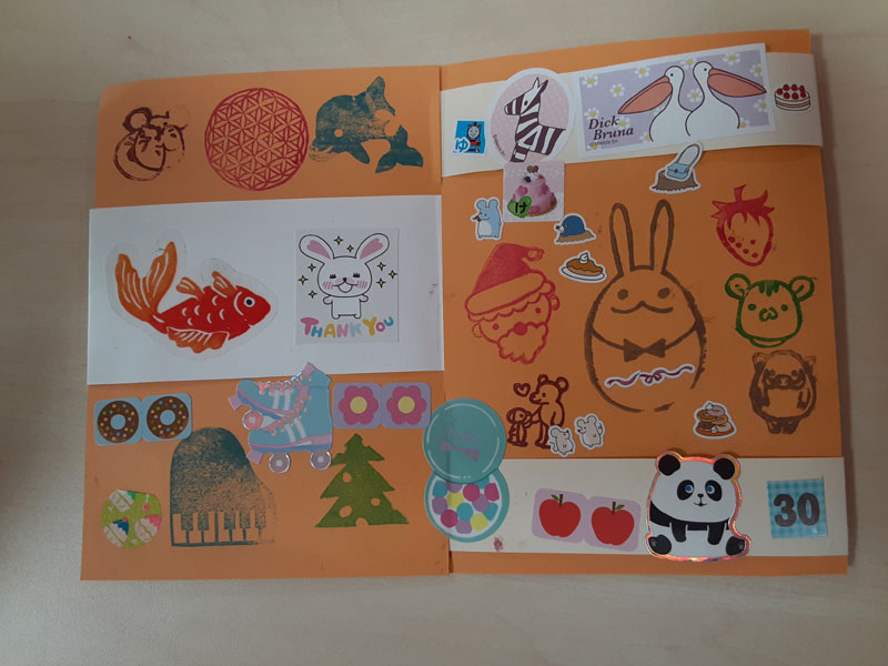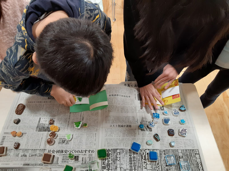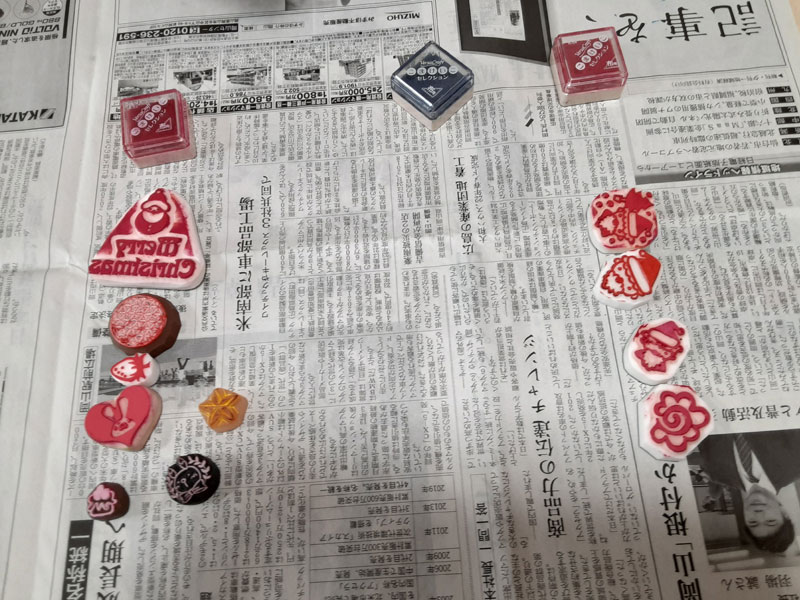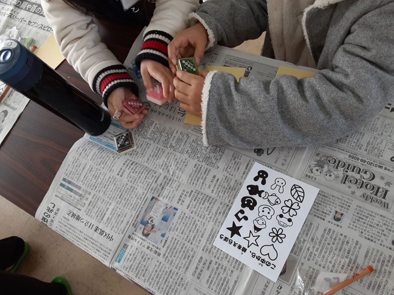 時間調整のため先生の作られたハンコを、各色1回ずつ押させていただきました♪