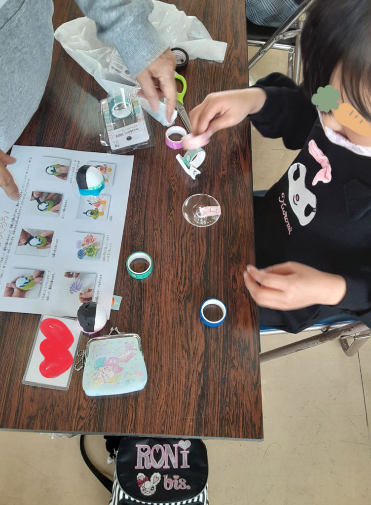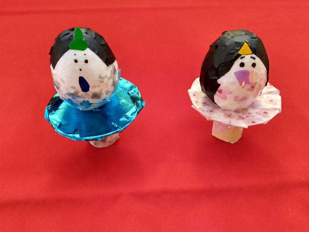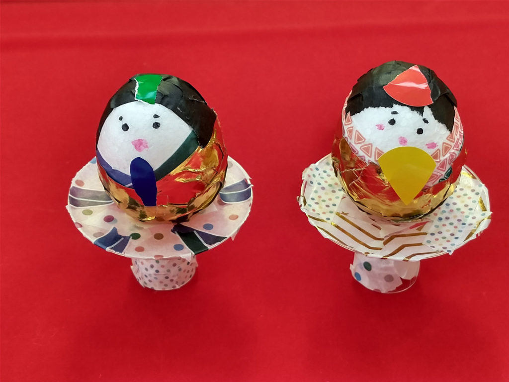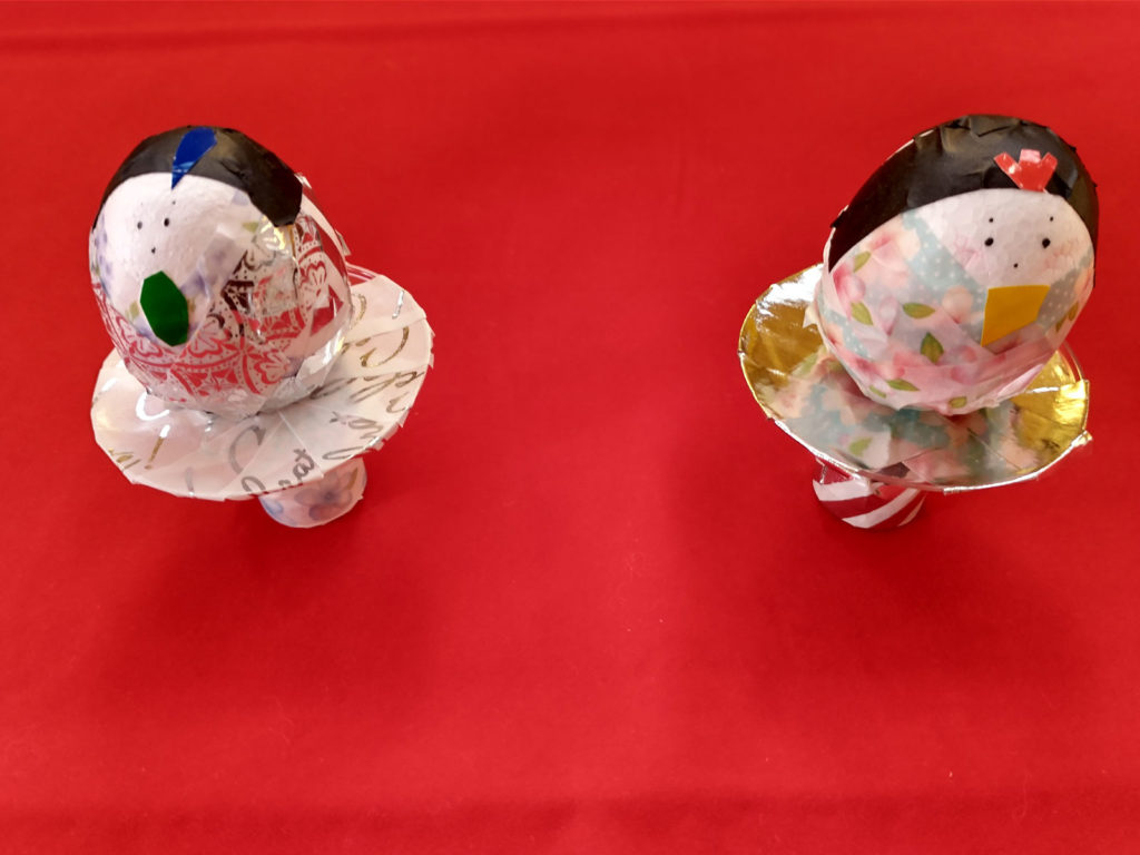 今回はマスキングテープを使ってカラフルなおひな様作りに挑戦しました。どれも個性あふれる可愛い作品に仕上がりました。