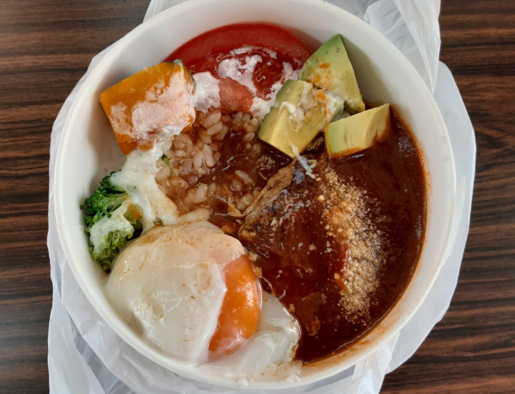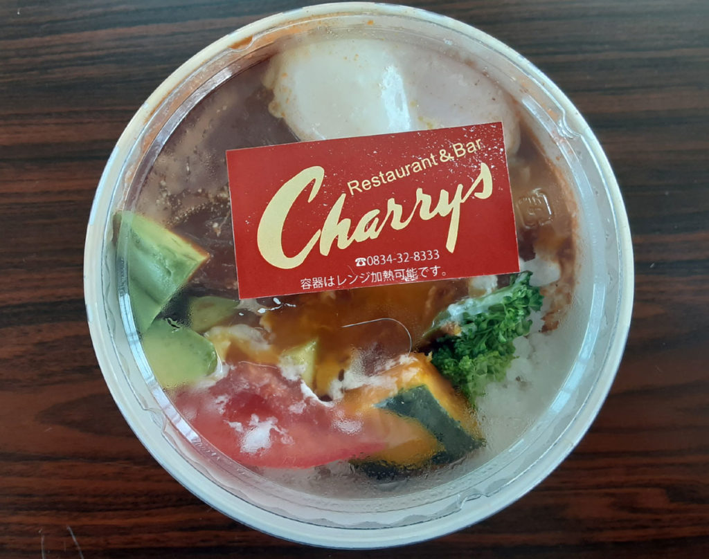 午前の部のお弁当はCharry’sさんのロコモコ丼弁当です。ご飯の上にハンバーグと半熟卵がのっていて、とても美味しそうです♪