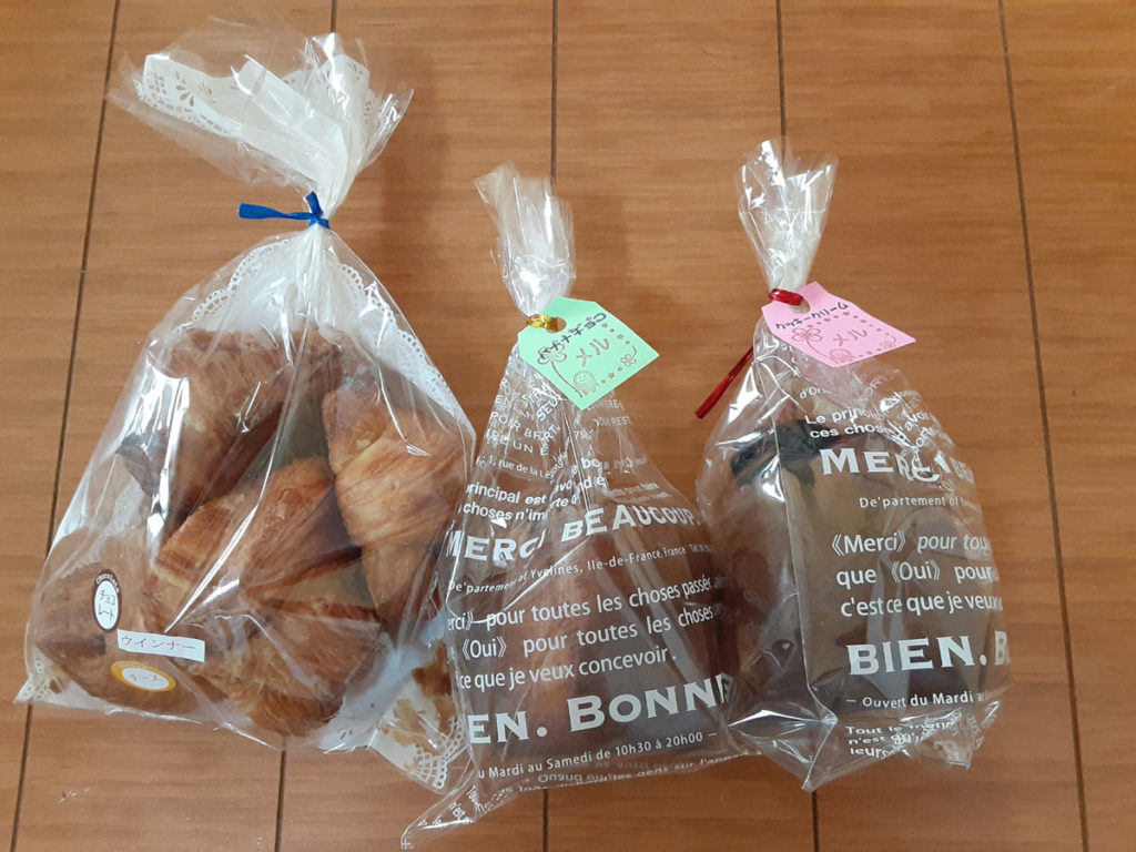 午後の部のおやつは城ヶ丘のパン屋メルさんのミニクロワッサンです。どれも美味しそうですね♪