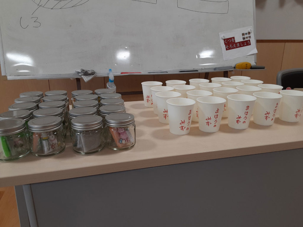 “まほうのみず”を先生とボランティアさんが事前に準備