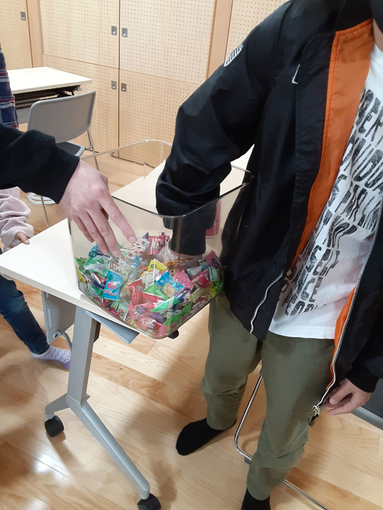 お菓子のつかみ取りをしました💚