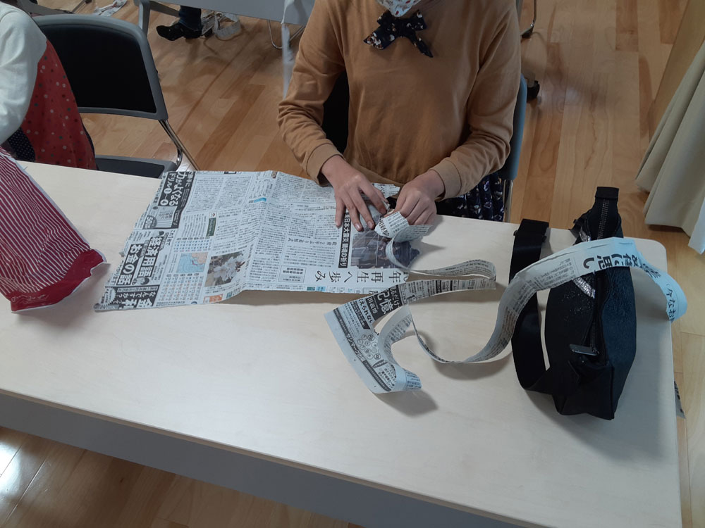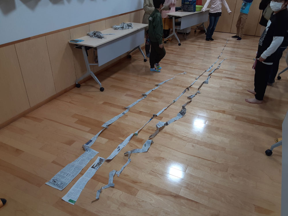 時間があまったので新聞紙をどれだけ長く裂けるか?競争しました♪