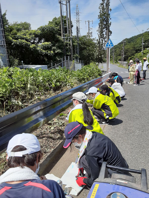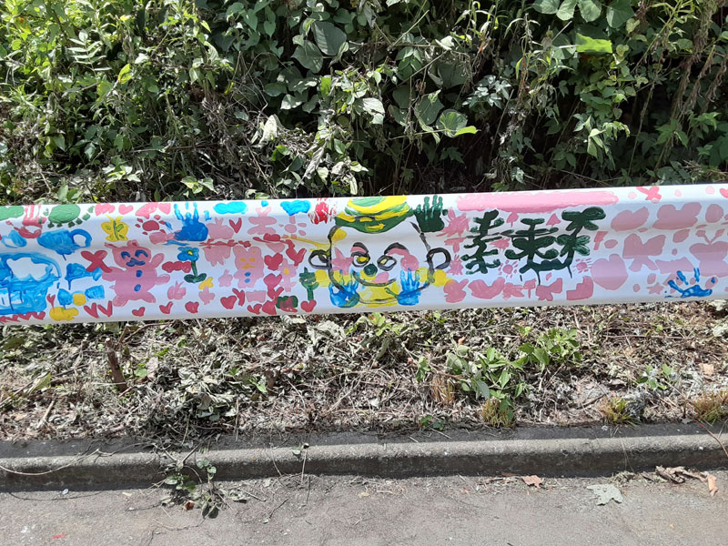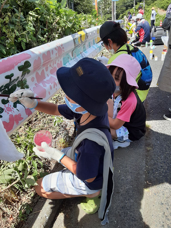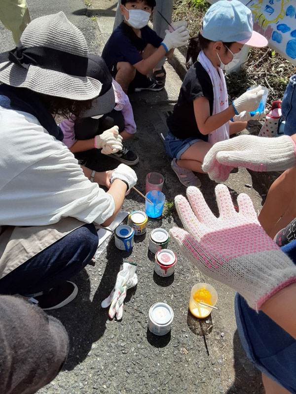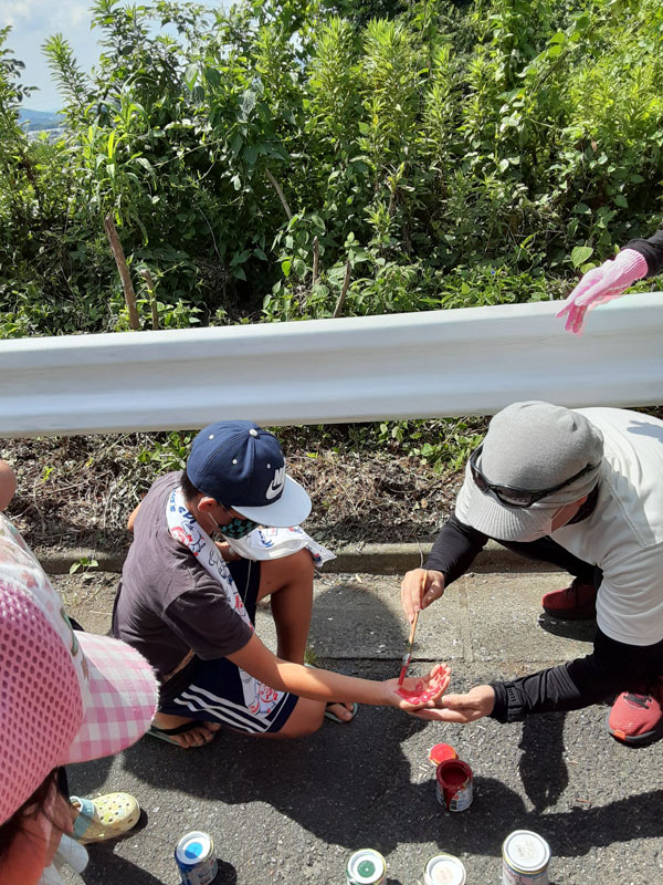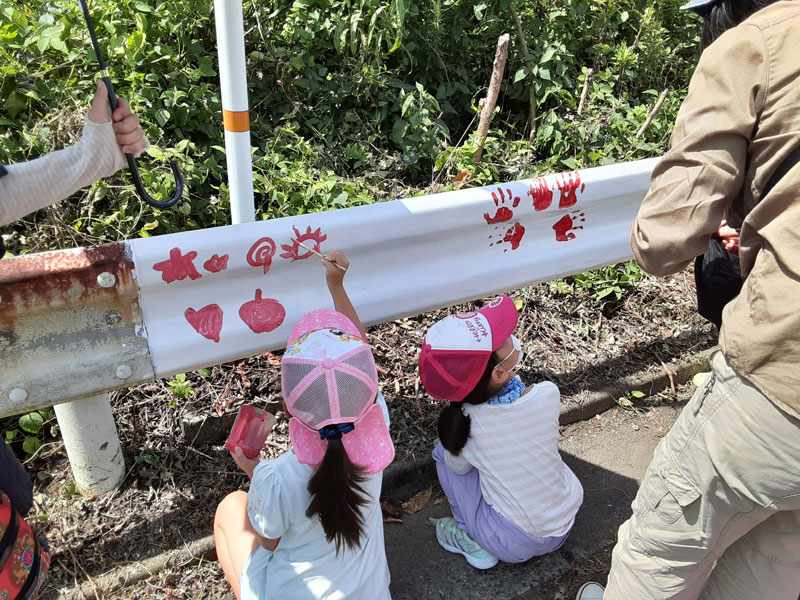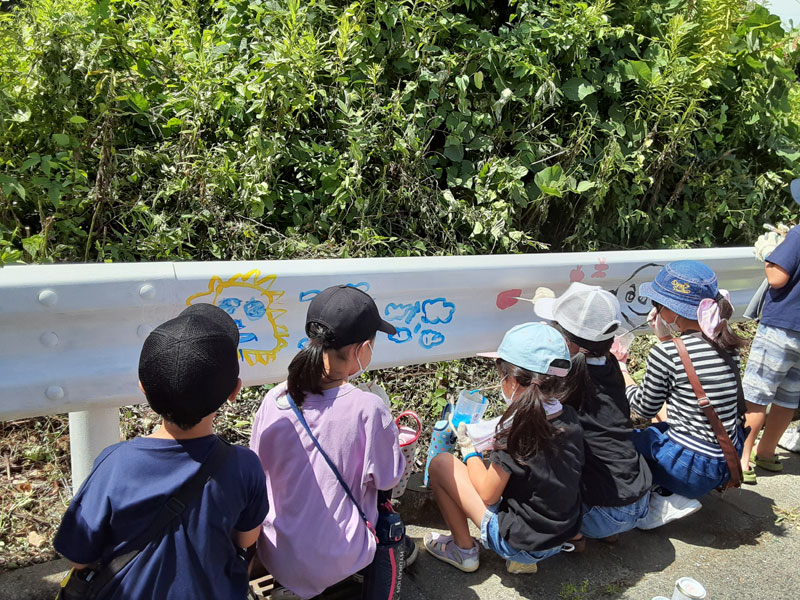 ②絵筆を使って、好きな物を好きな色でガードレールにかく