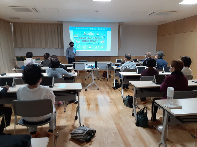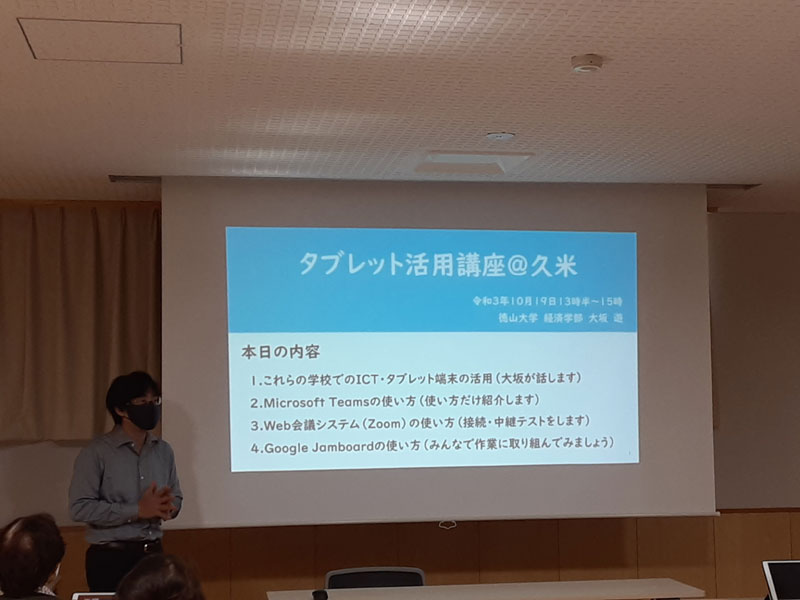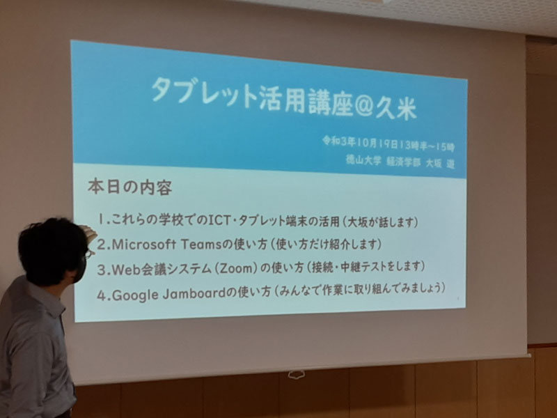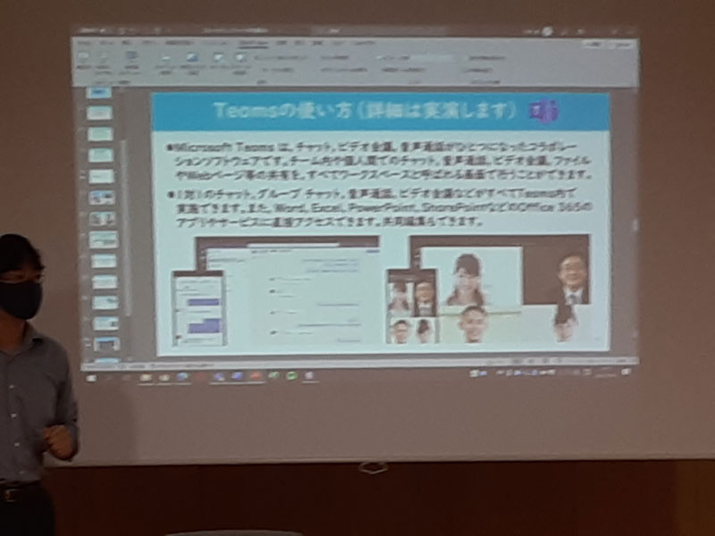 今回は徳山大学の先生方のご協力で講習をしていただきました。社協関連の方達とみんなの久米ハウスのボランティアさんが参加しました。コロナ禍でリモートワークがされる昨今、様々な会議ツールが使われていますが、teamsやZoomの使い方を学びました。新しいことにチャレンジすることは楽しいものです。