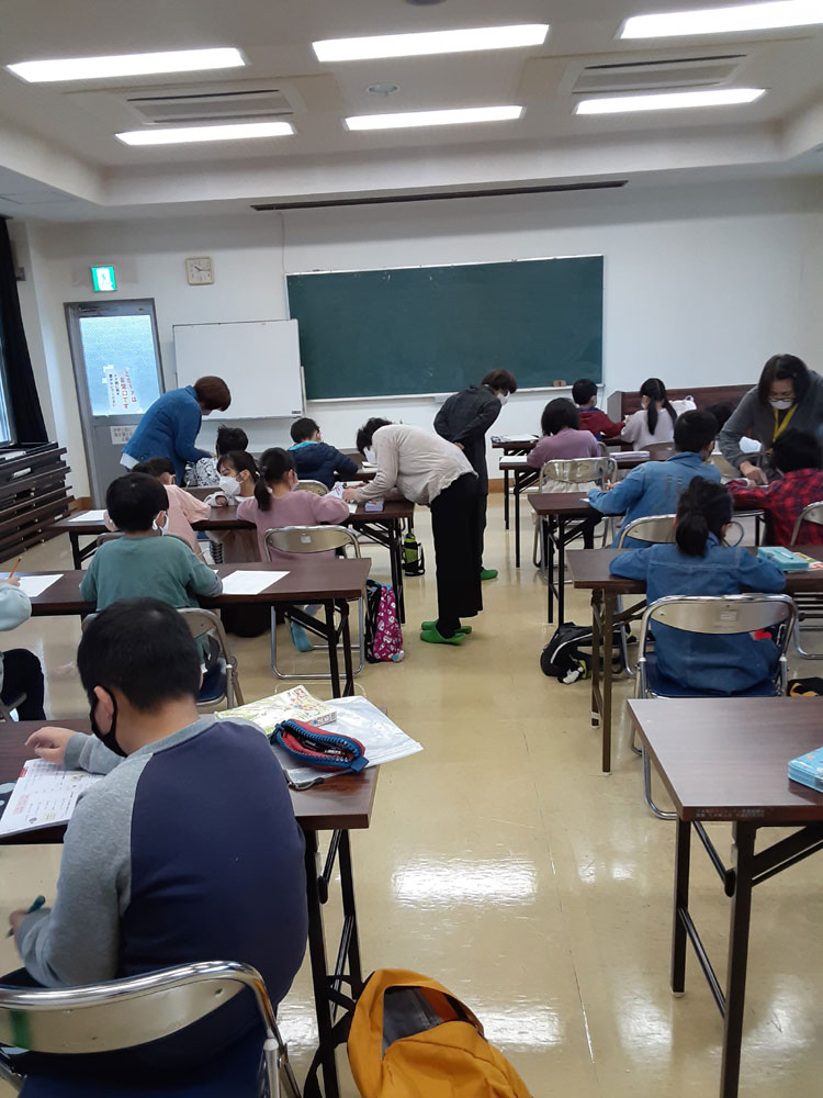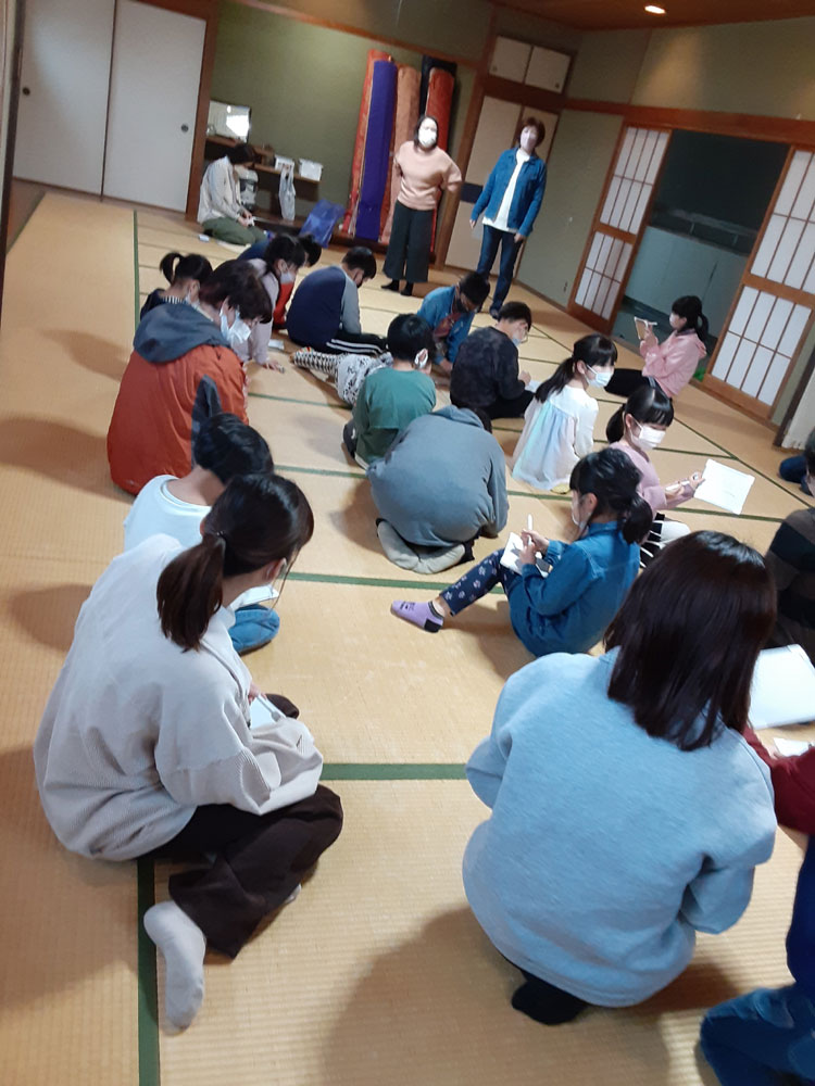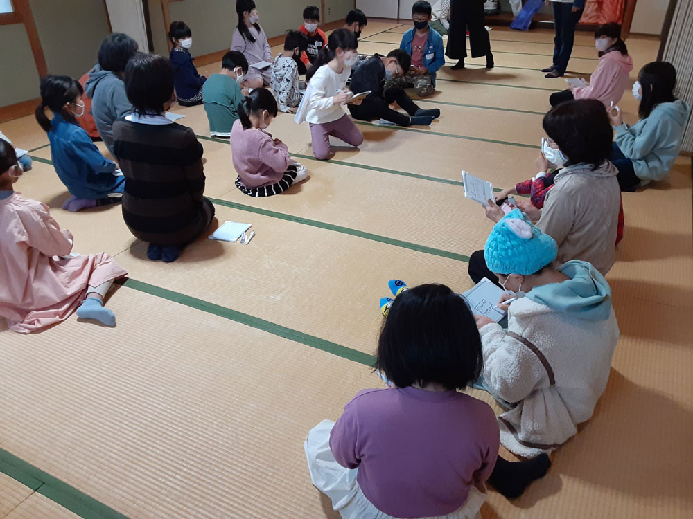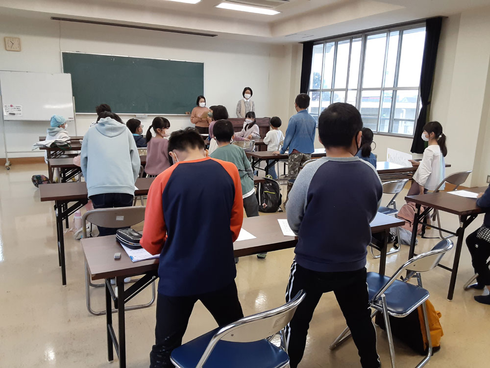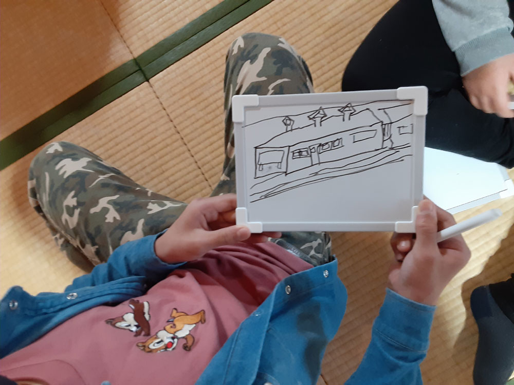 令和3年度最後の「みんなの久米ハウス」は自学自習のあと、”お楽しみ会”として、〇✖クイズやお絵描き伝言ゲーム、ビンゴをしました。〇✖クイズでは、久米地区や周南市の歴史についての地元クイズと、防災クイズを出題しました。お絵描き伝言ゲームは数十秒で絵を描き、上手に次々に伝えていました。ビンゴでは上がった人からお菓子のつかみ取りをしました。会が終わってから、クイズの内容が勉強になったことや、皆でゲームを楽しめて良かったという感想がほとんどの子供たちから聞けました。