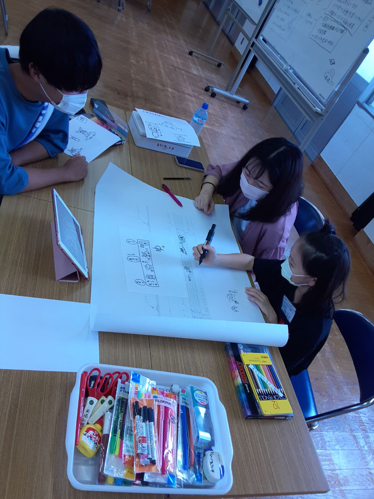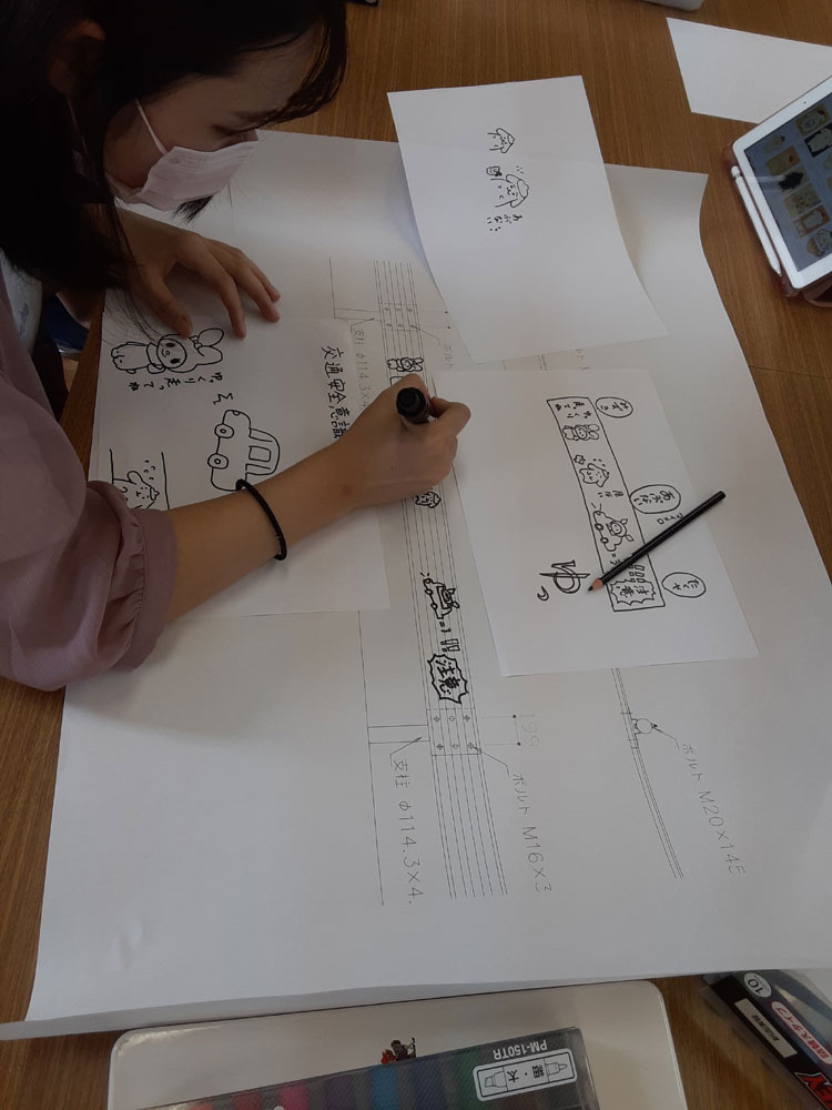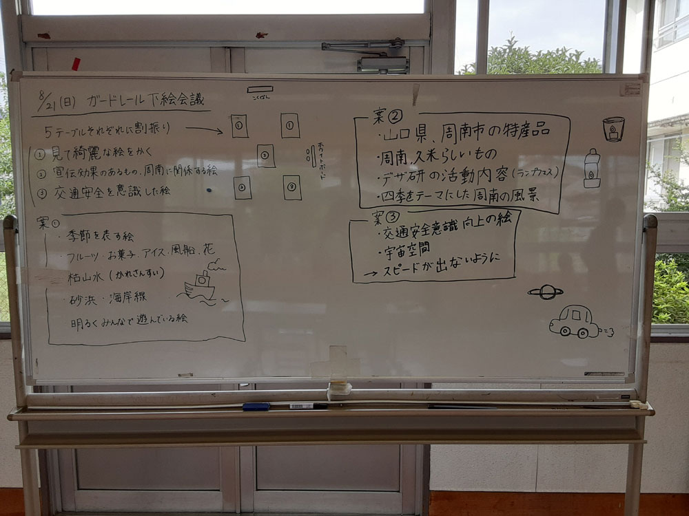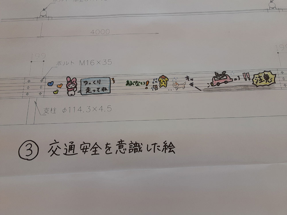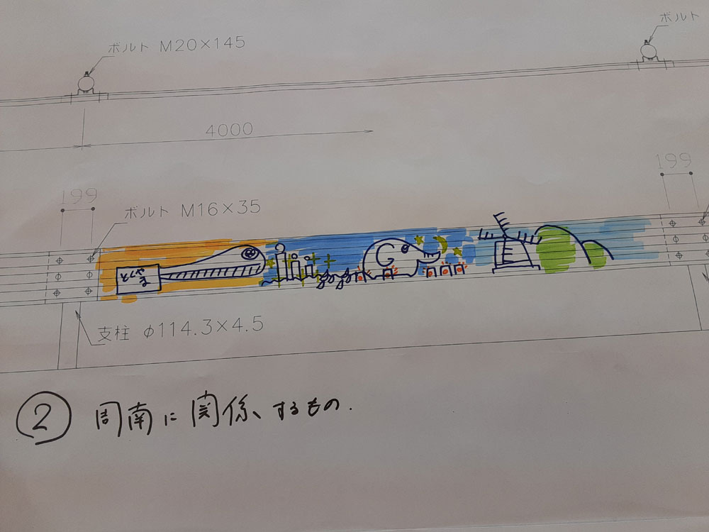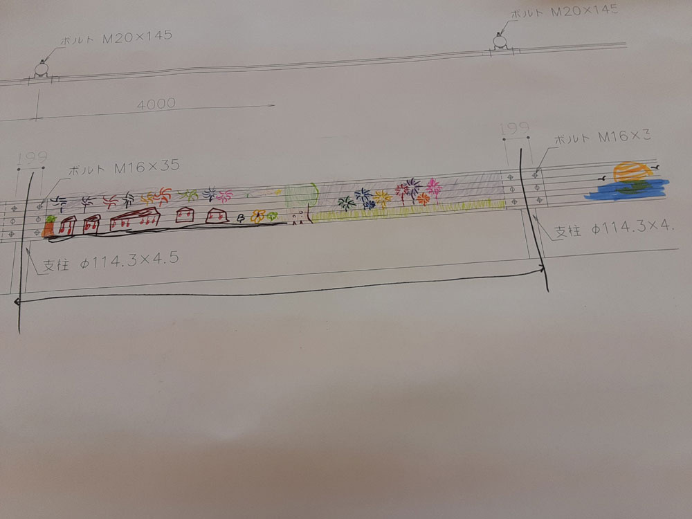 徳山工業高等専門学校生が考えた3つのテーマに添って、ガードレールに描く図柄を考えました。