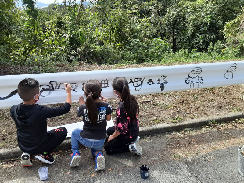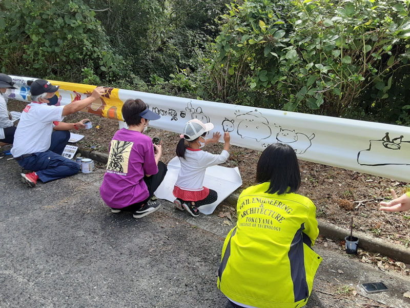 カテゴリー 体験教室 くめっこアート 投稿者 作成者: 久米ハウス 投稿日 2022-09-25 日 時9月25日(日)10:00~12:00場 所徳山高専前参加者児童16 一般ボランティア4 徳山工業高等専門学校生他7 デザイン協会会員 徳山工業高等専門学校生と一緒にガードレールに絵を描きました。 ← みんなの久米ハウス → みんなの久米ハウス