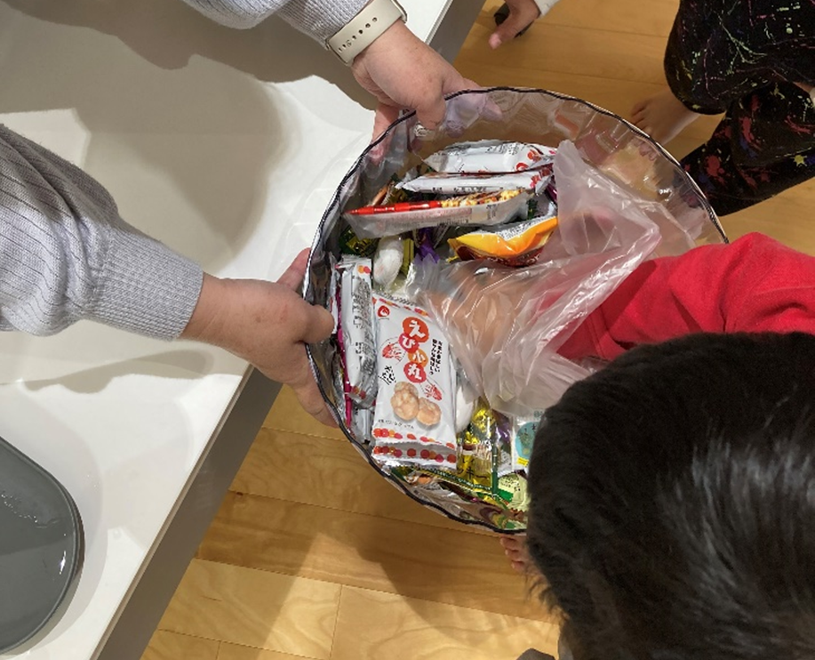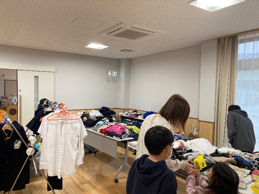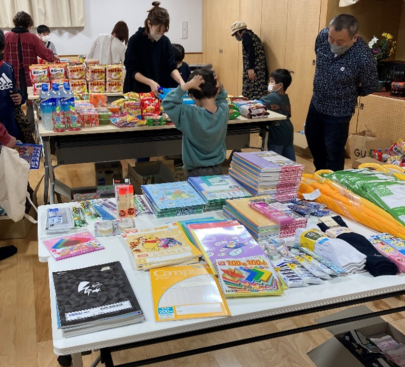 不用品の交換会も行いました。子ども達へのお菓子のつかみ取りも好評でした。