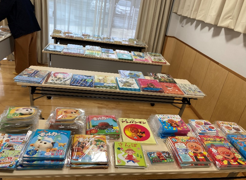 来場した子供たちにフレーベル館様からいただいた本をプレゼントしました。