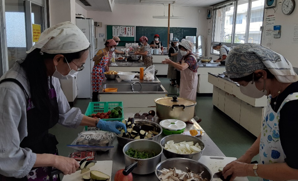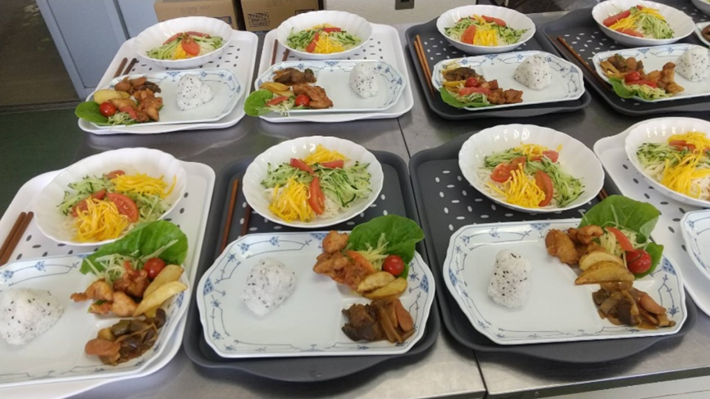 アルク秋月店様から青果の提供を受け調理した昼食をみんなで食べました。