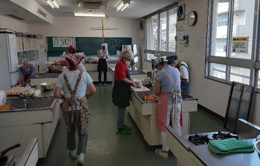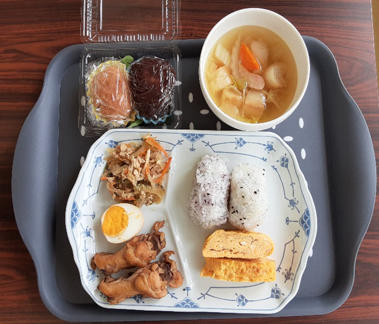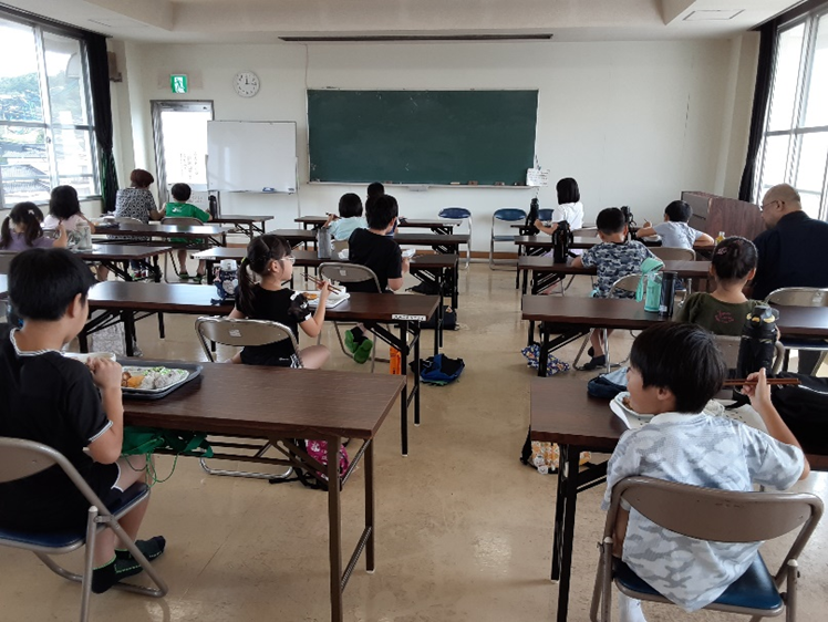 アルク秋月店様から青果の提供をうけ調理した昼食をみんなで食べました。