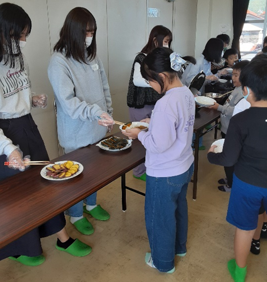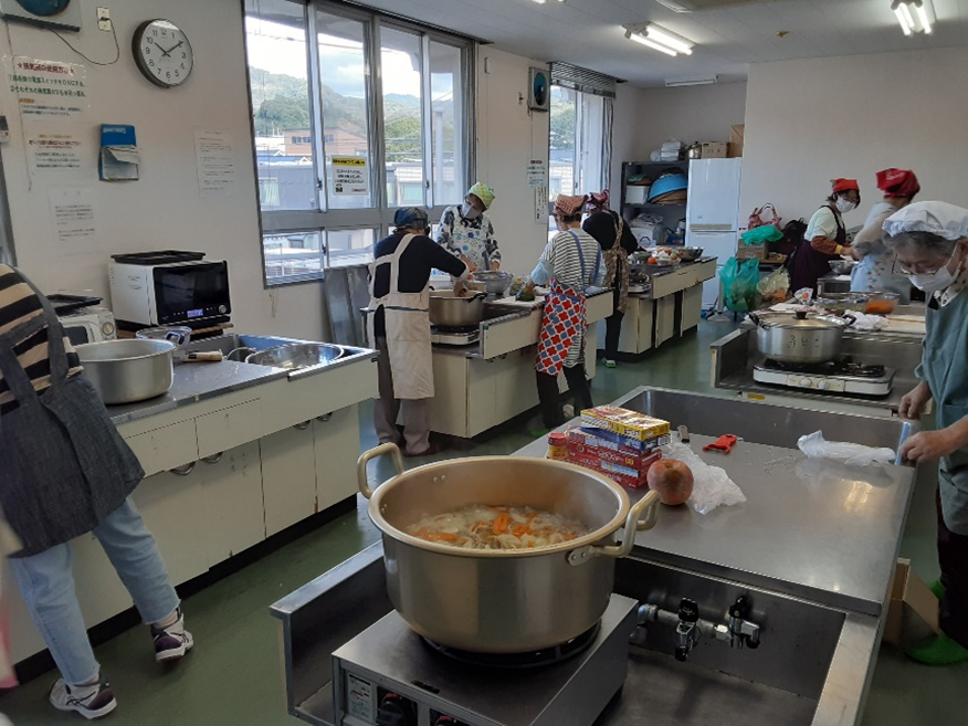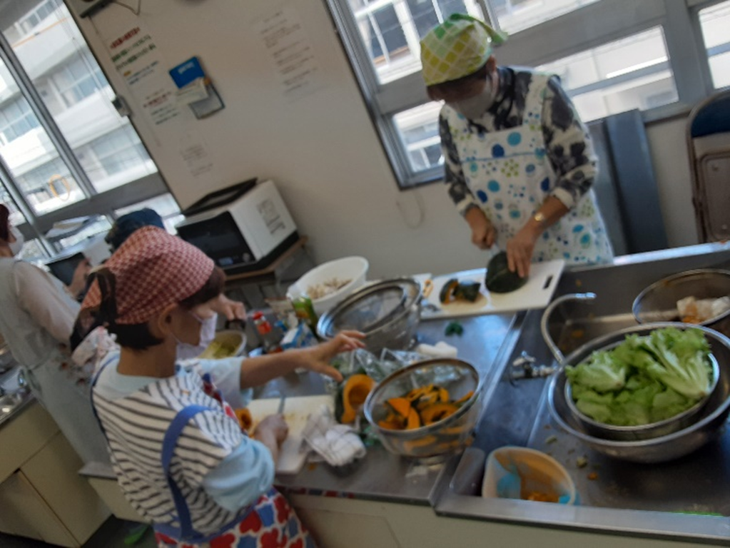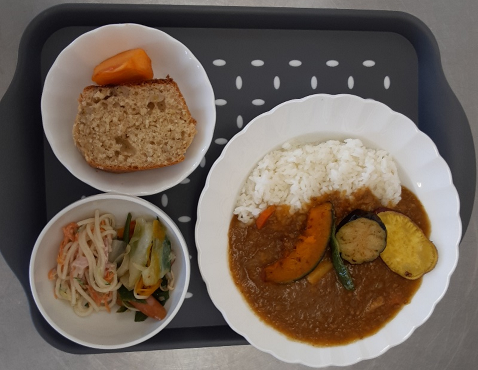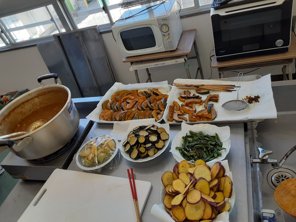 アルク秋月店様から青果の提供をうけ調理した昼食をみんなで食べました。