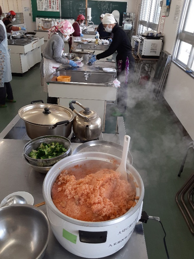 アルク秋月店様から青果の提供をうけ調理した昼食をみんなで食べました。