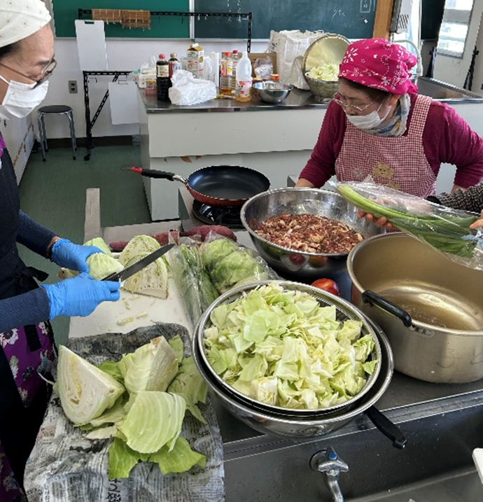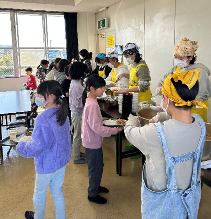 アルク秋月店様から青果の提供をうけ調理した昼食をみんなで食べました。