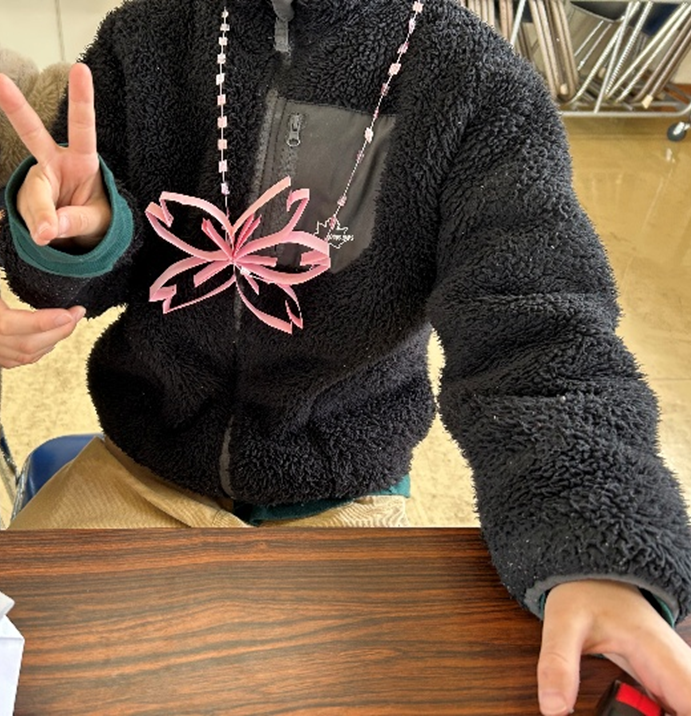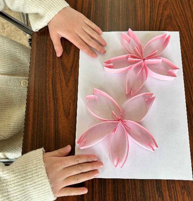 ひな祭りにちなんで、桜のモービルを作りました。