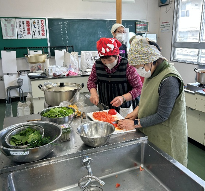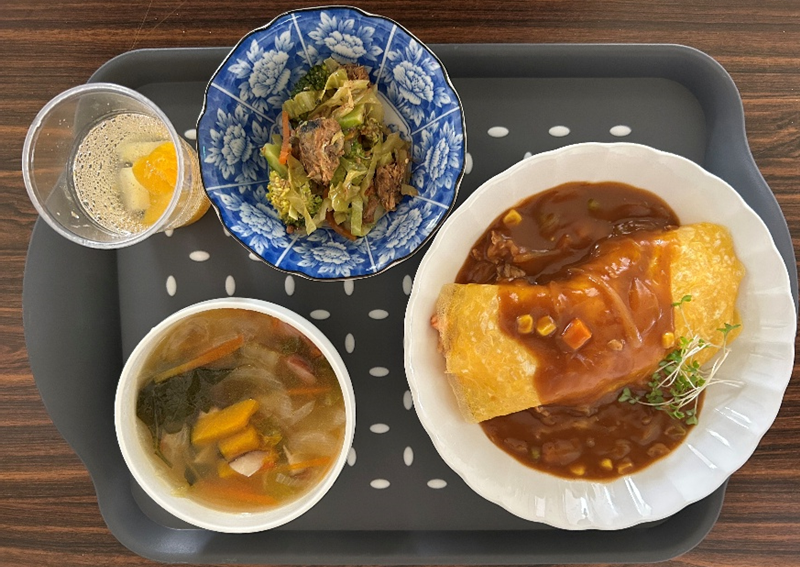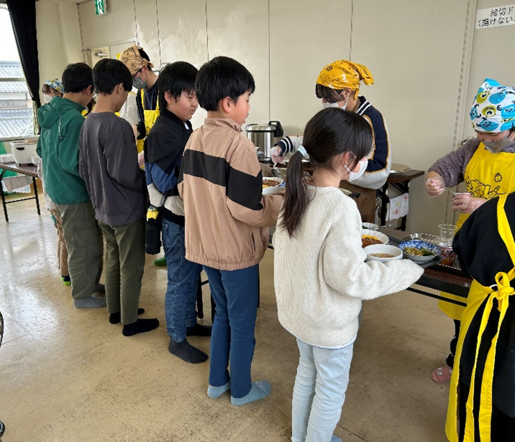 アルク秋月店様から青果の提供をうけ調理した昼食をみんなで食べました。