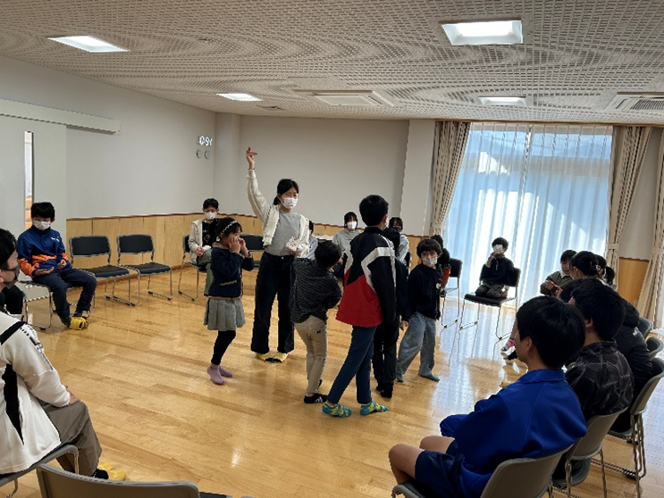 ボランティアと一緒に勉強をした後、みんなでゲームをして遊びました。