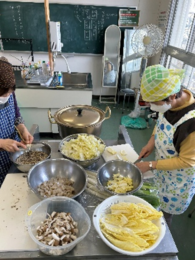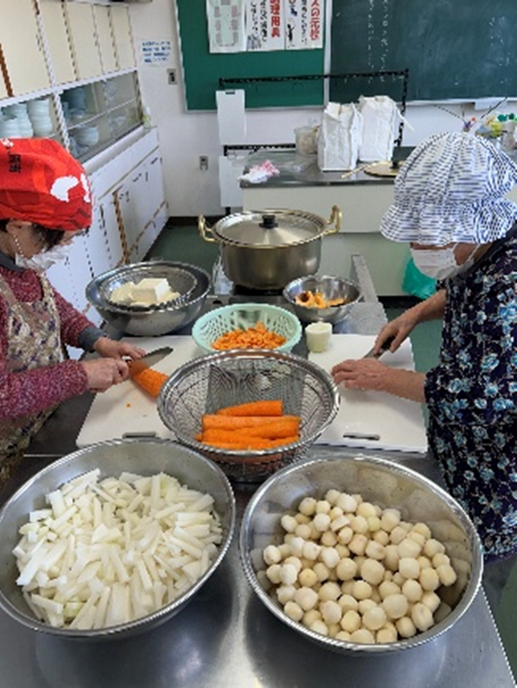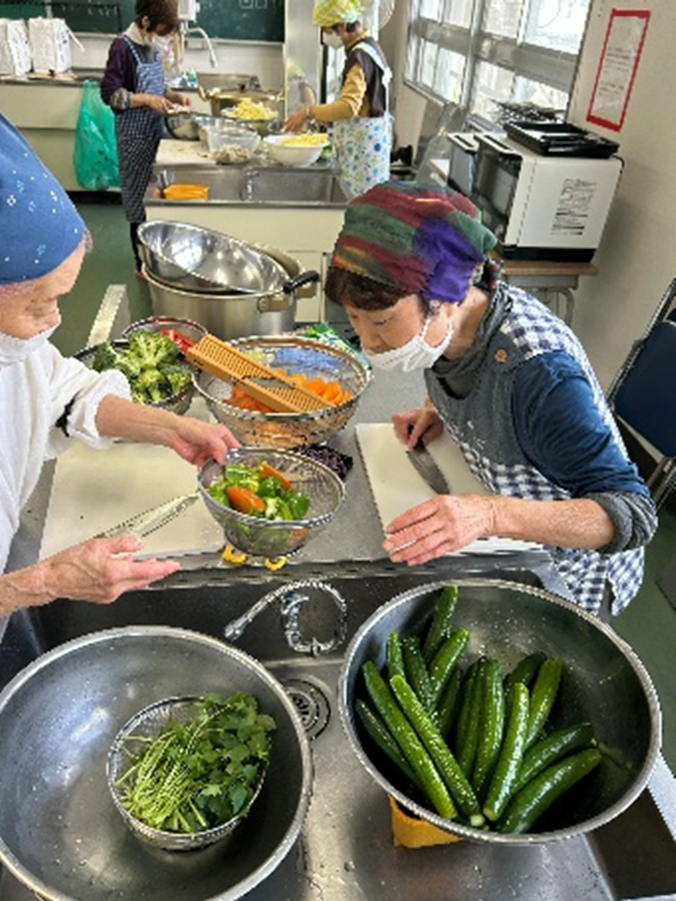 アルク秋月店様から青果の提供をうけ調理した昼食をみんなで食べました。