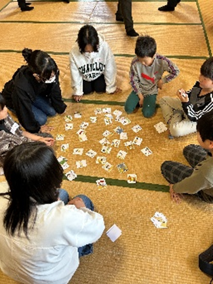 かるたで遊びながら、防災について学びました。子供達にとってかるた札を読むのが大人気でした。